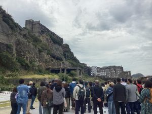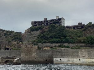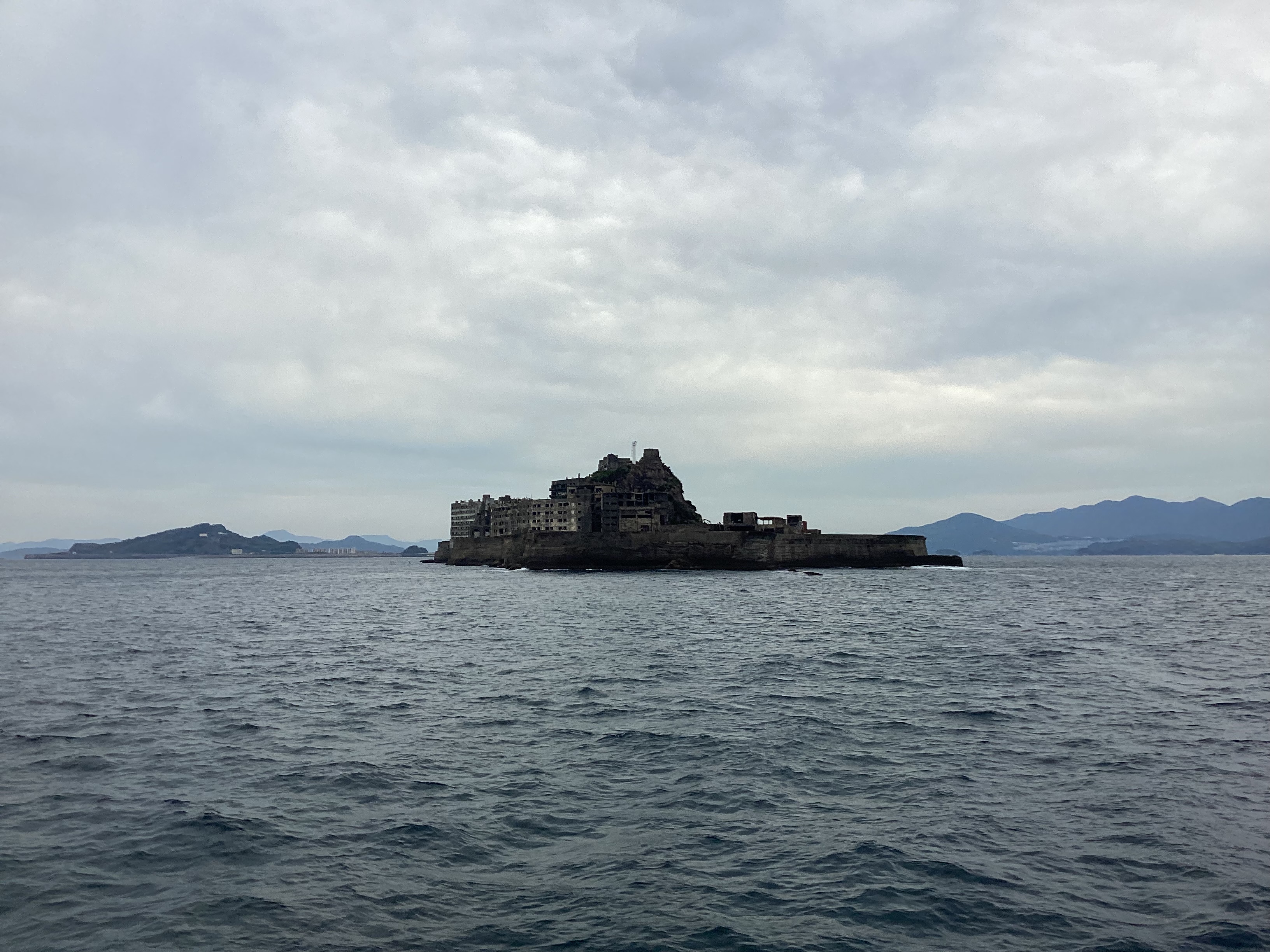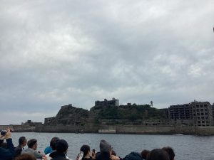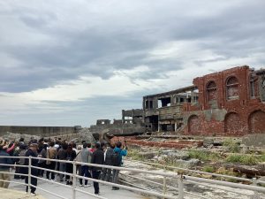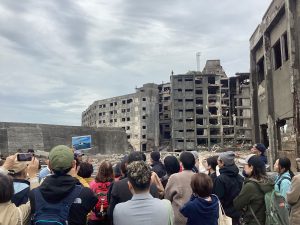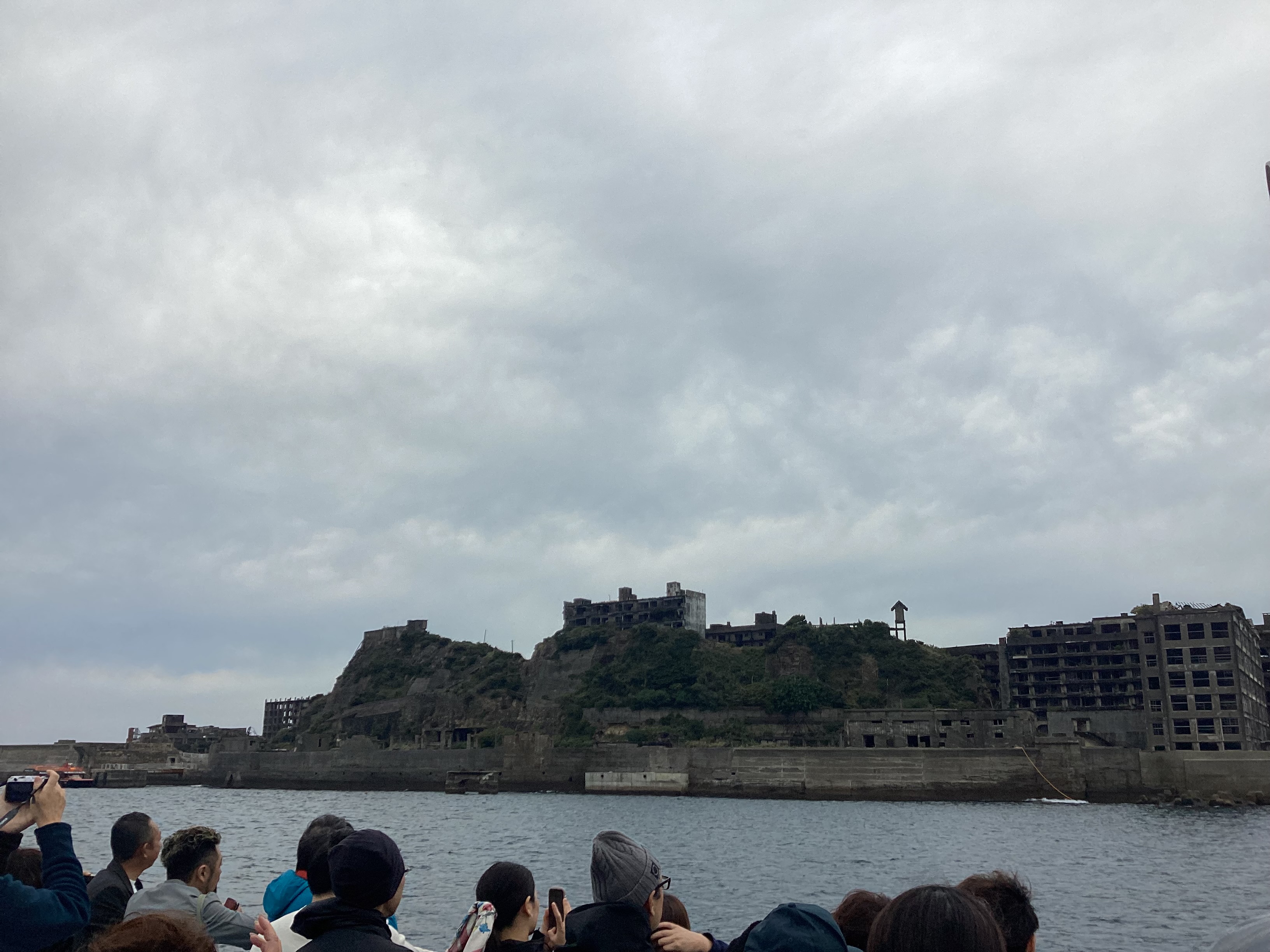 お客様はガイドの話に耳を傾けながら、迫力ある軍艦島の姿を写真に撮られていました🎞️