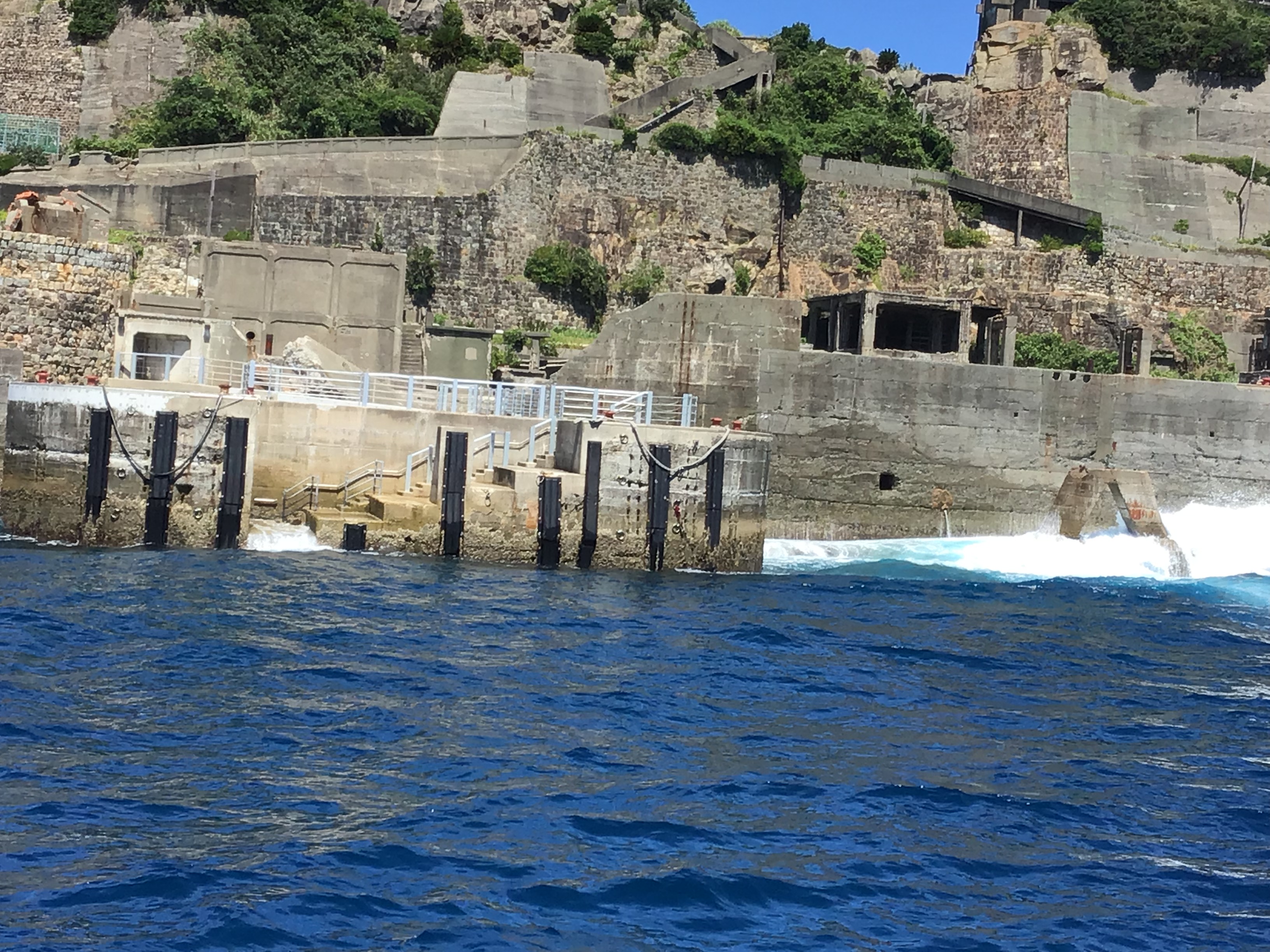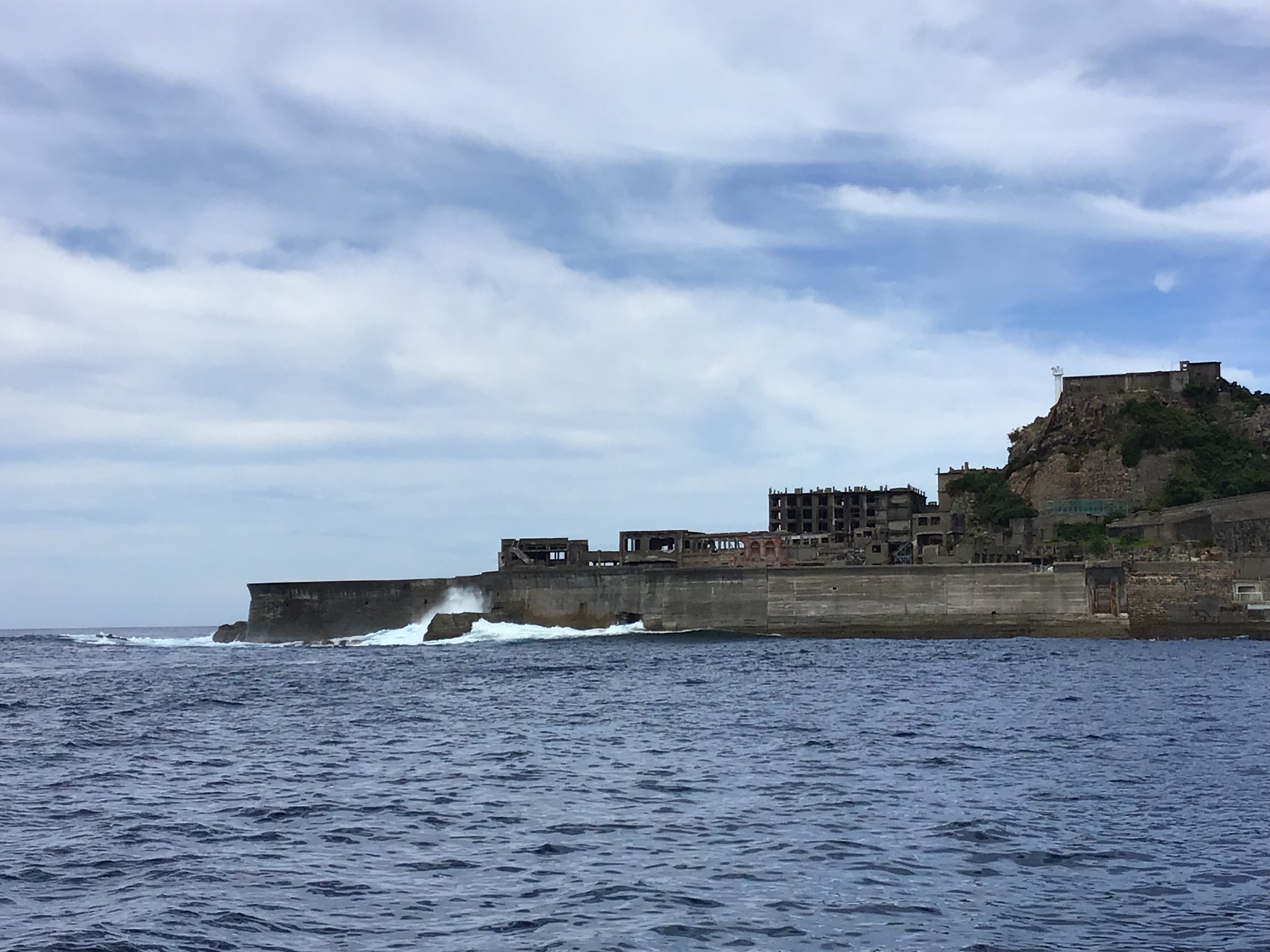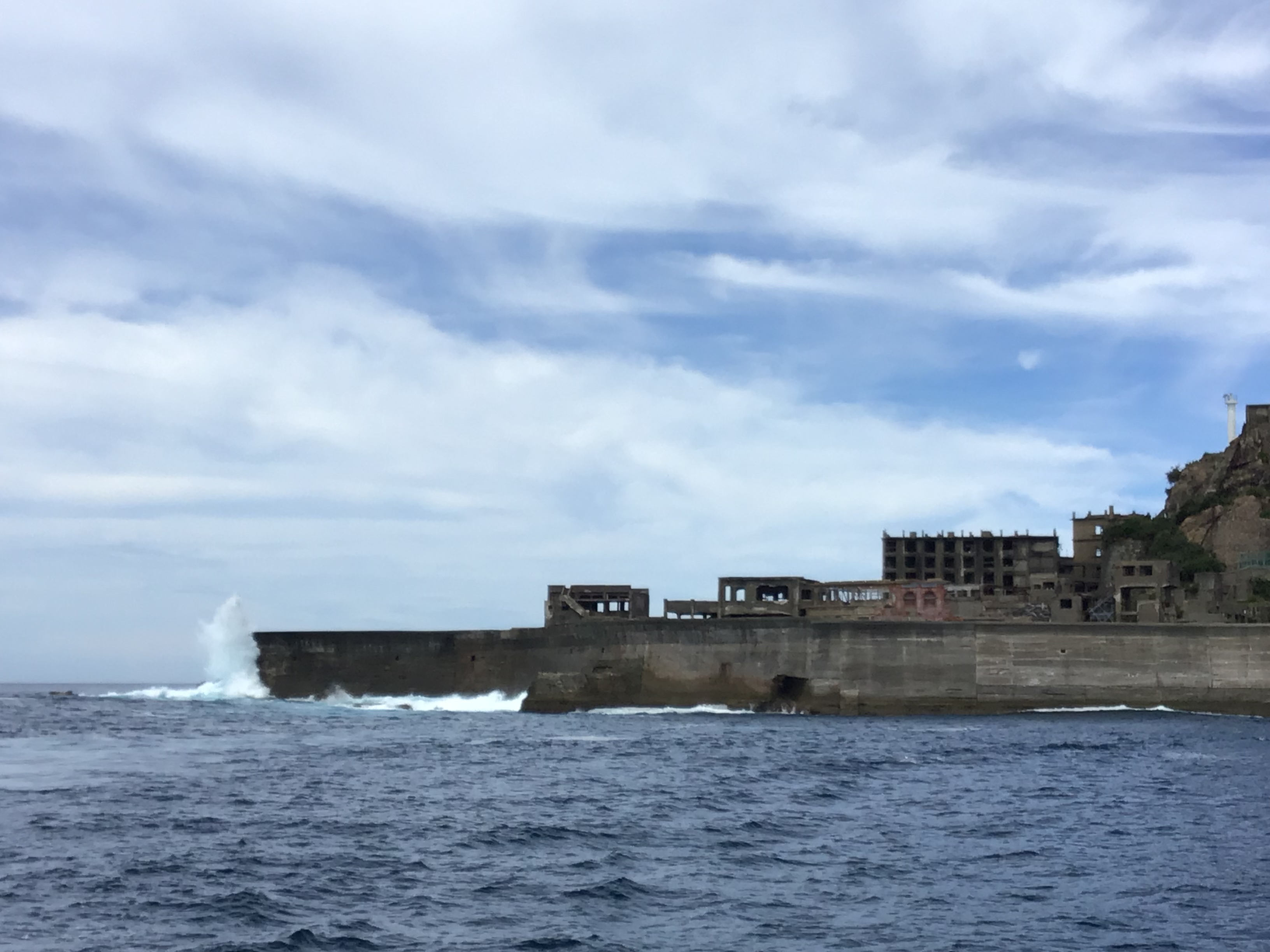 台風の影響がでており、本日もうねりが高く上陸ができませんでした。 大きなうねりが来ると10mもある護岸を簡単に超えてしまいます∑(゚Д゚) 自然の力は本当に凄いですね! 皆様には、迫力ある軍艦島を見ていただけたかと思います!