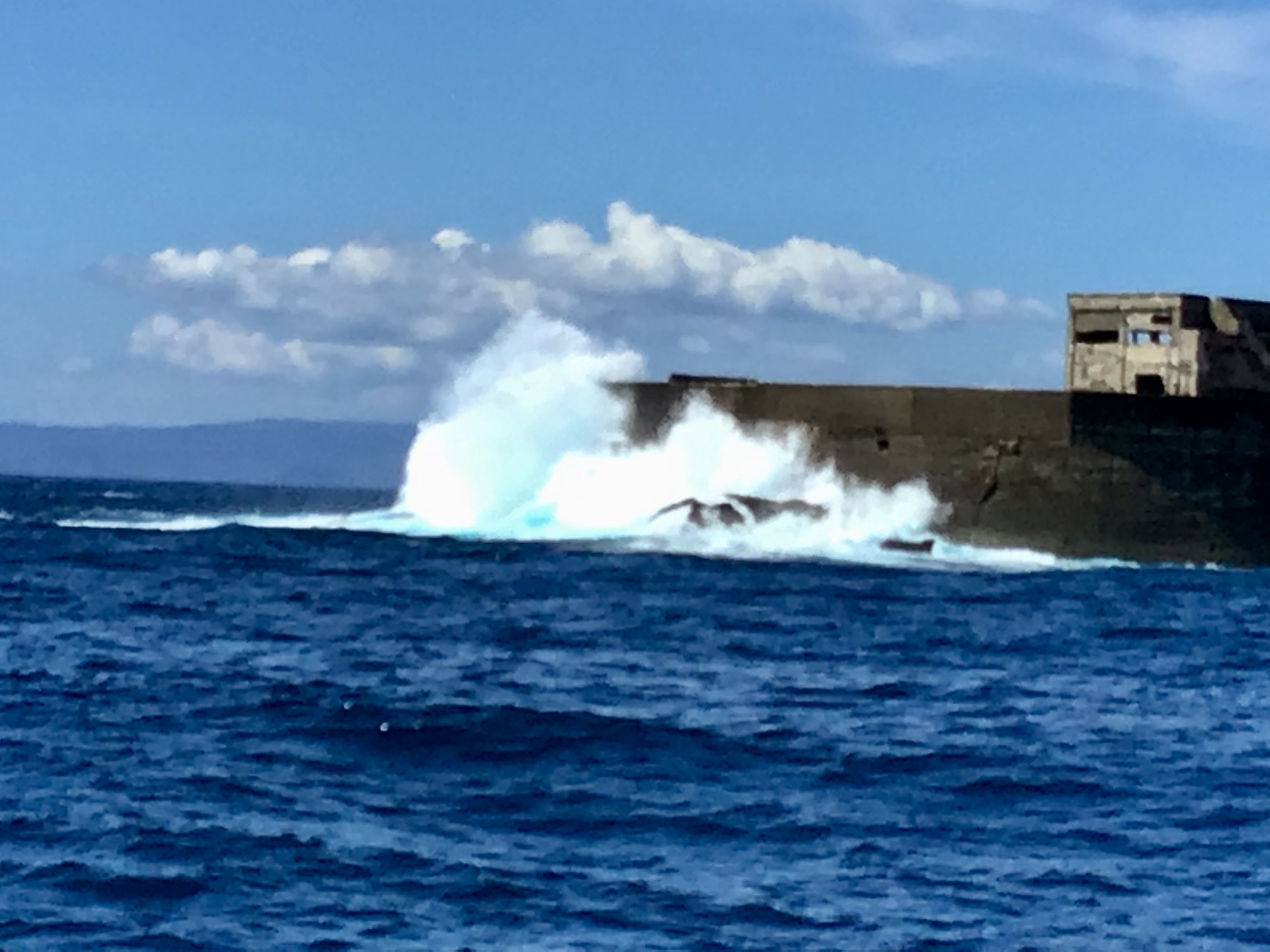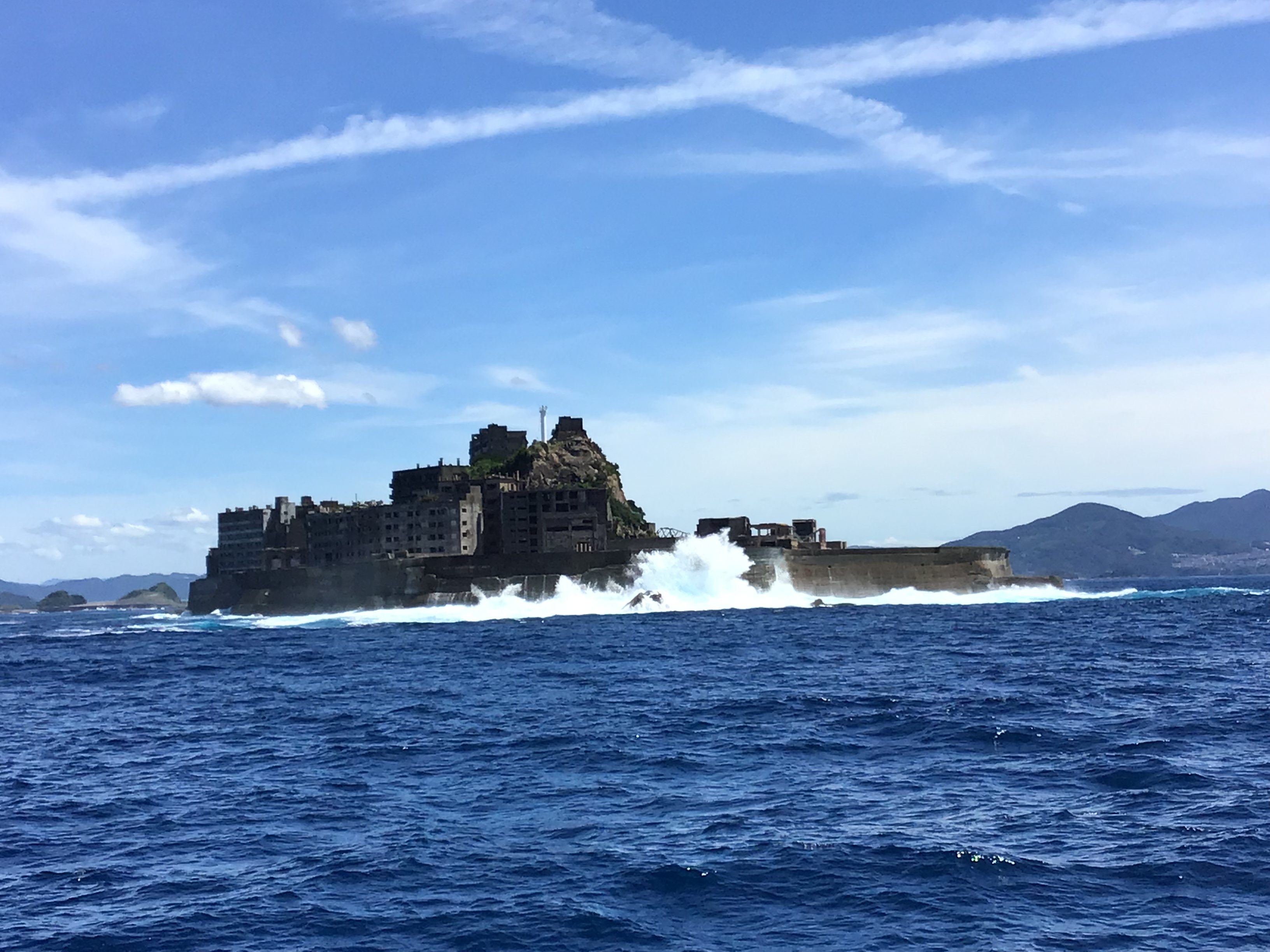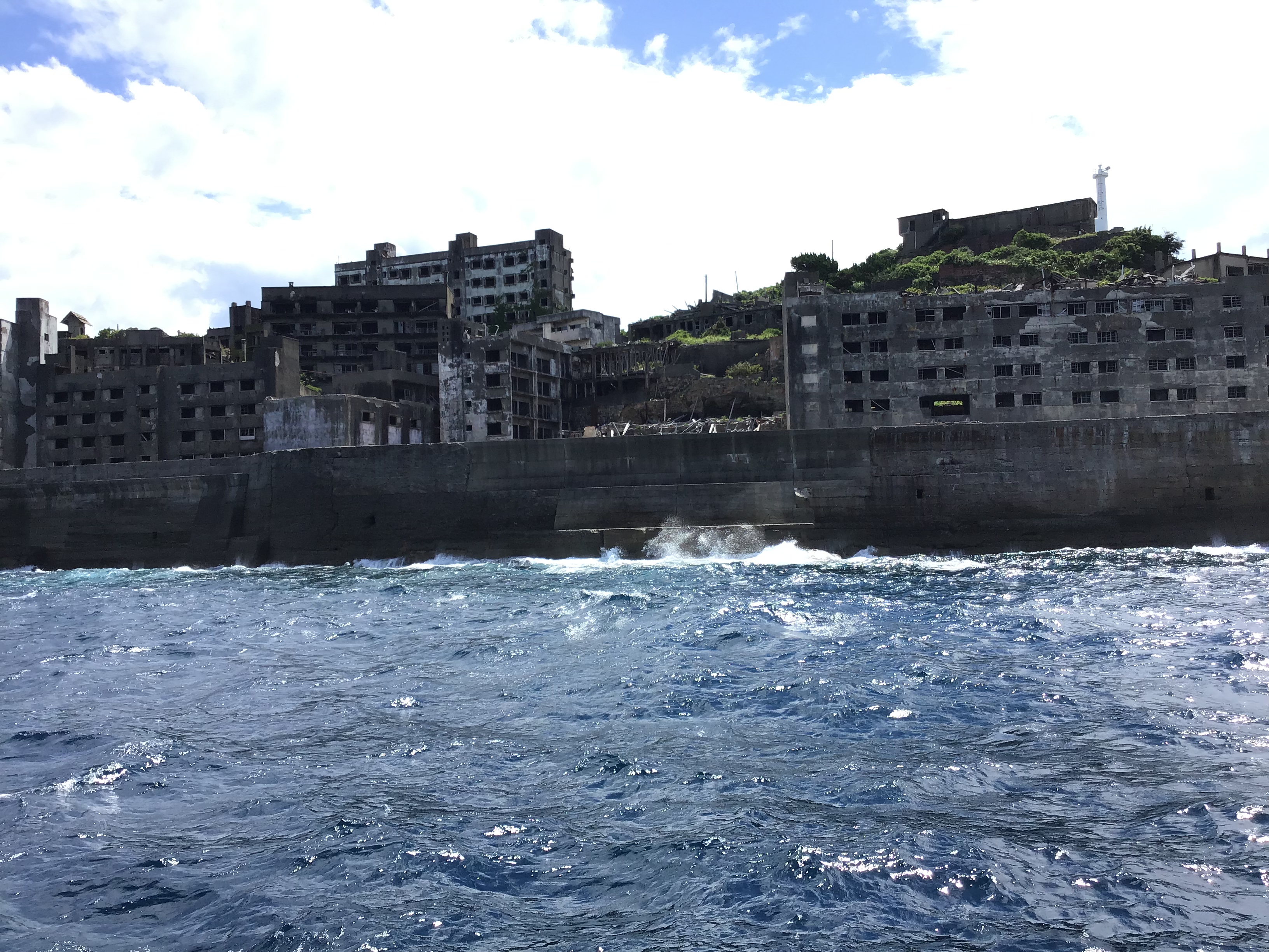 台風の影響がでており、本日もうねりが高く上陸ができませんでした。 大きなうねりが来ると10mもある護岸を簡単に超えてしまいます∑(゚Д゚) 自然の力は本当に凄いですね! 皆様には、迫力ある軍艦島を見ていただけたかと思います!
