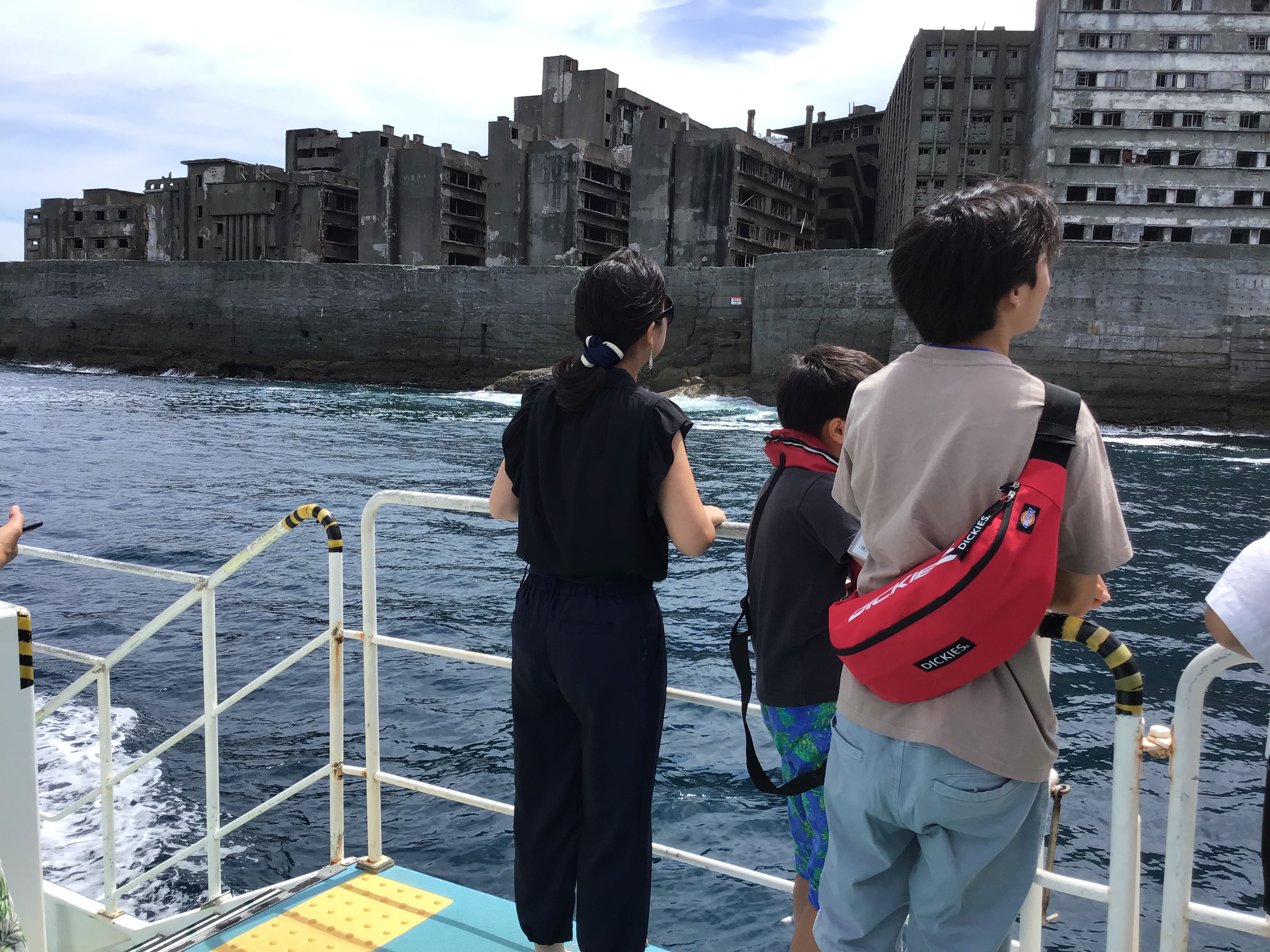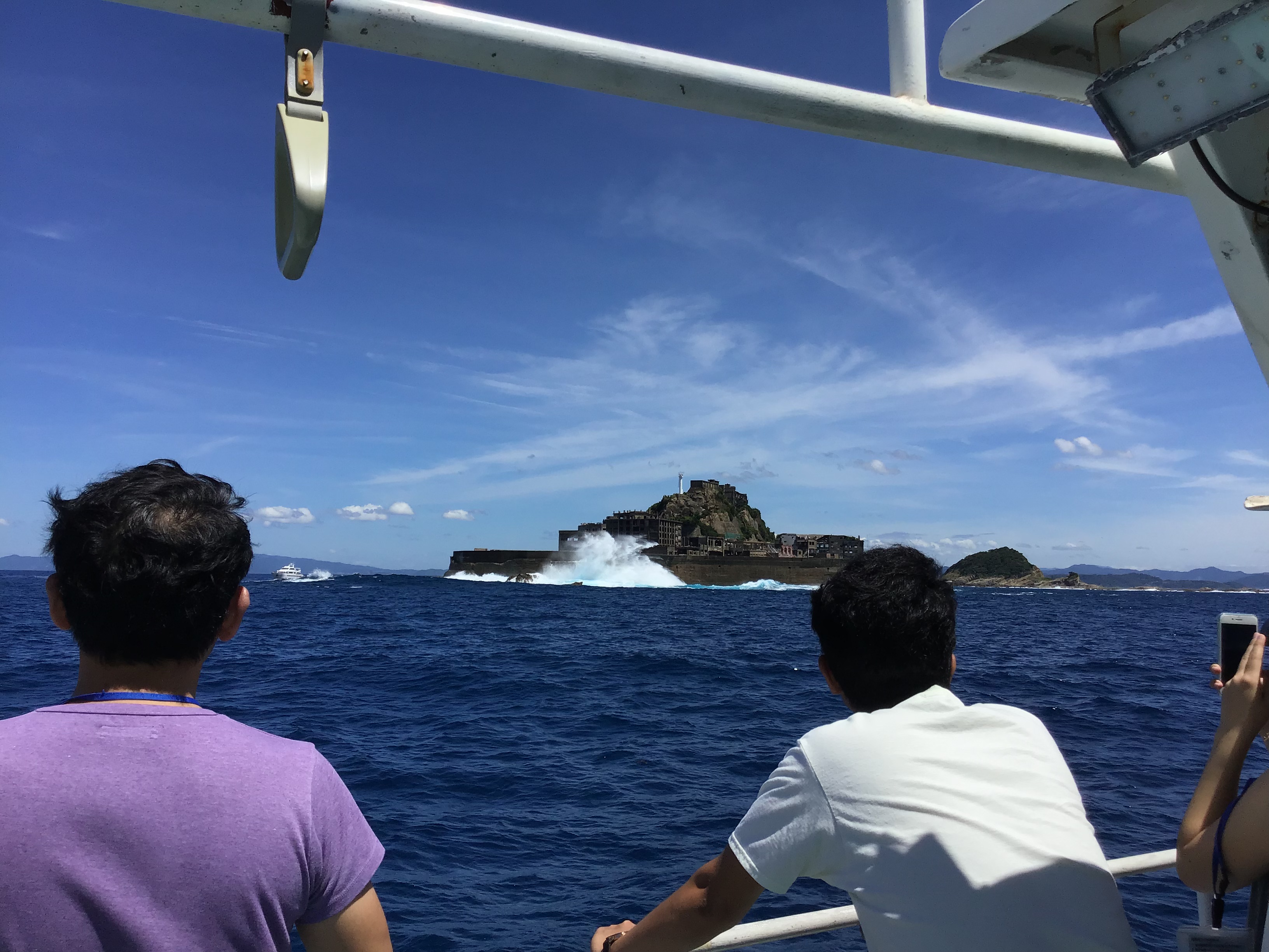 軍艦島を船上から、普段では撮ることができない軍艦島に波が上がる写真などを撮って頂きました( ^∀^)