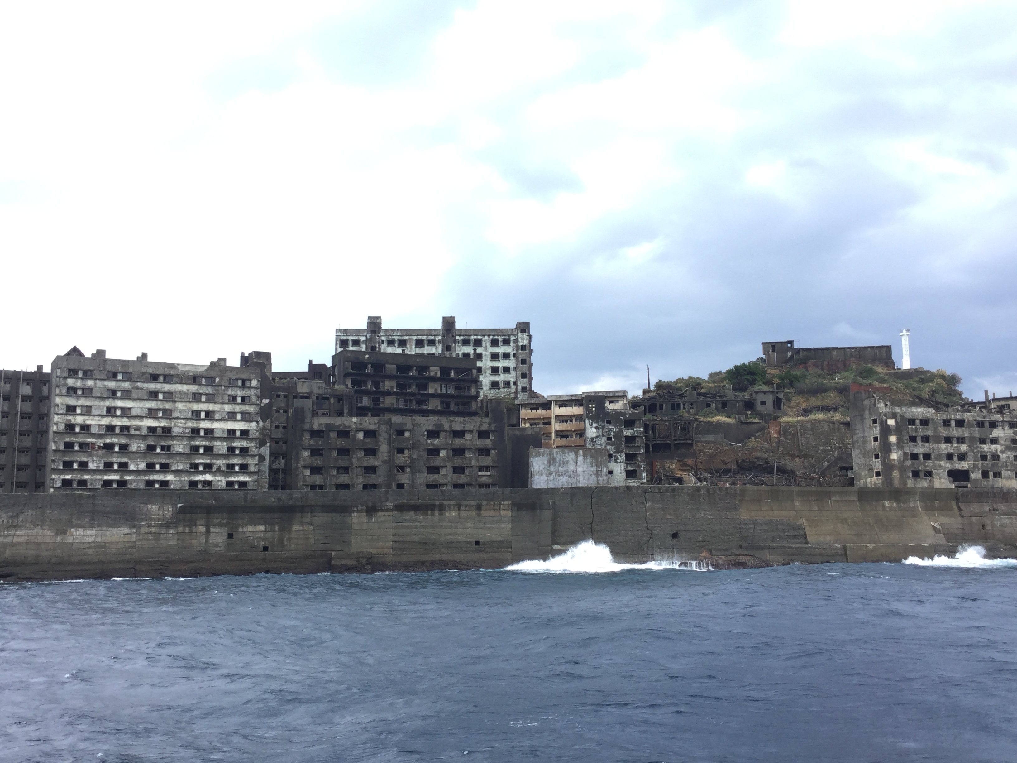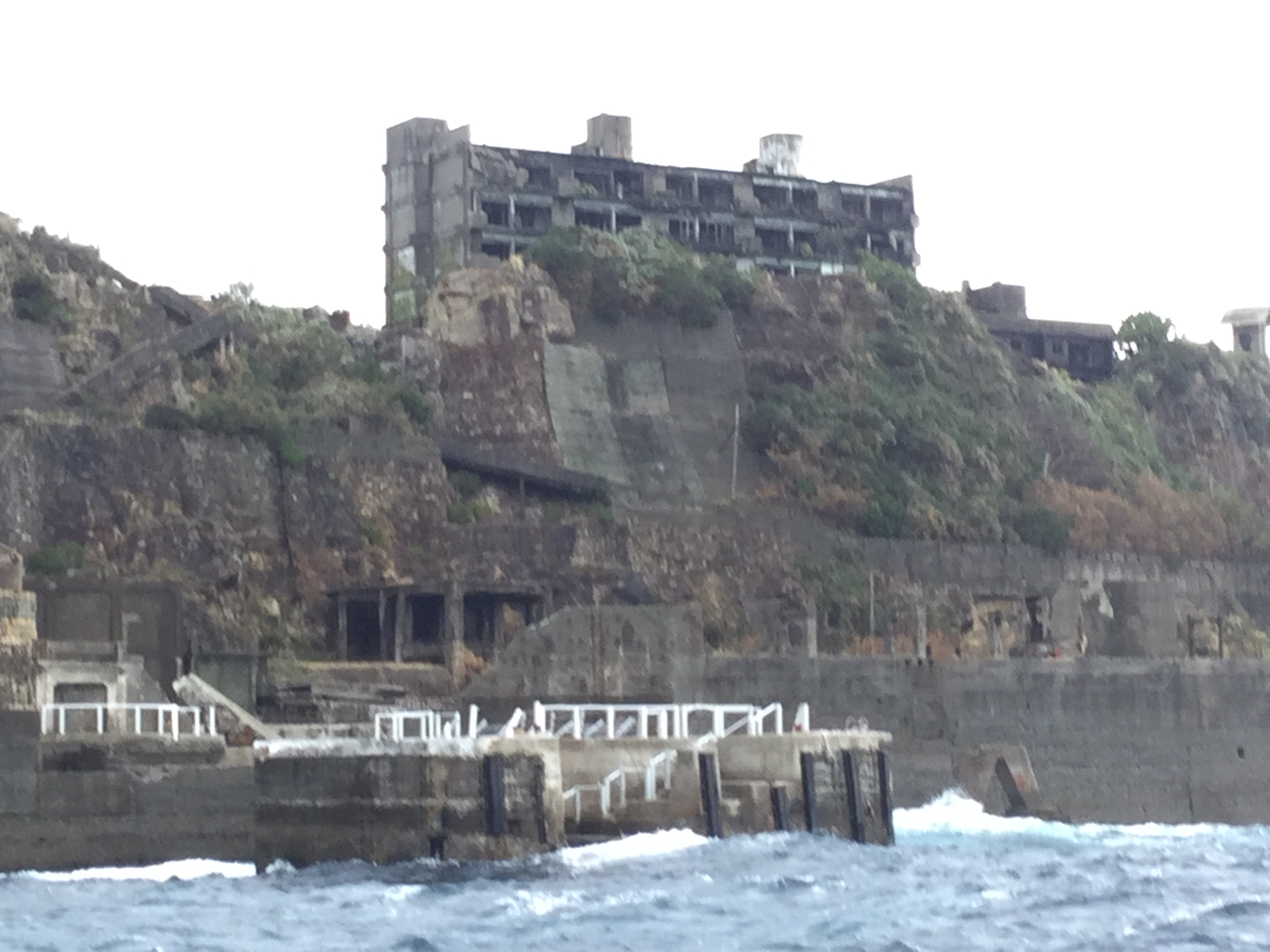 雨の日の軍艦島は、晴れの日とは違う 当時の面影を感じられるような雰囲気のある写真を撮る事ができます!!この写真はプリントアウトできますので思い出の一枚にして下さい(*^▽^*)マー船長より‼️