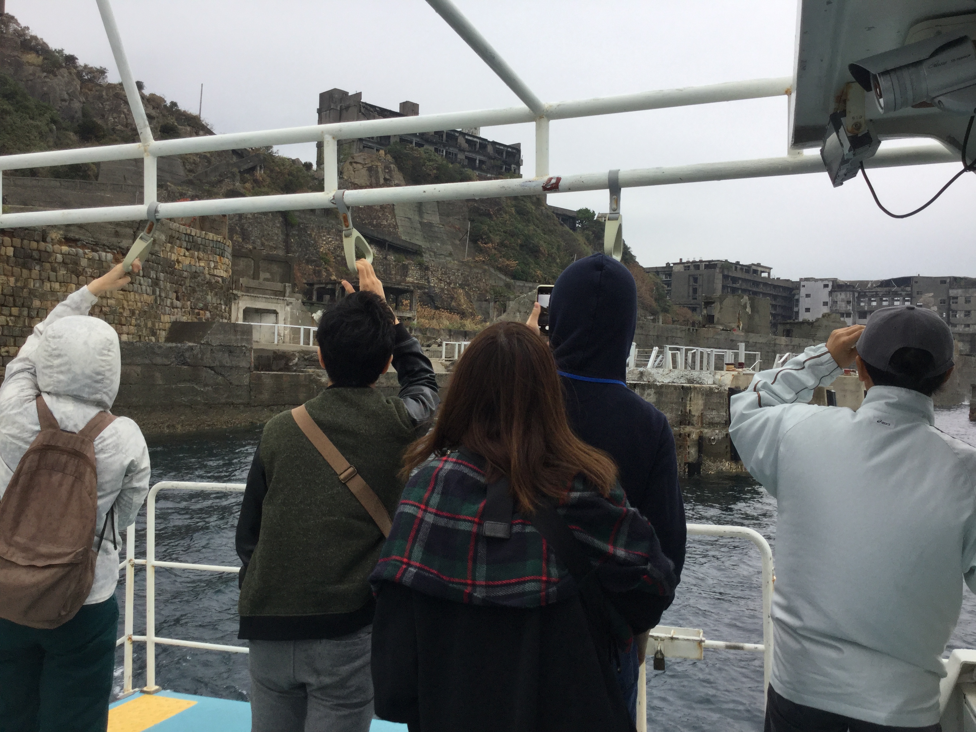 少し波がありましたが、ゆっくり周遊をすることができ、お客様は船上から見える軍艦島を堪能されておられました(^O^)晴れの日とは違った軍艦島を、皆様たくさん写真に収めておられました♪♪