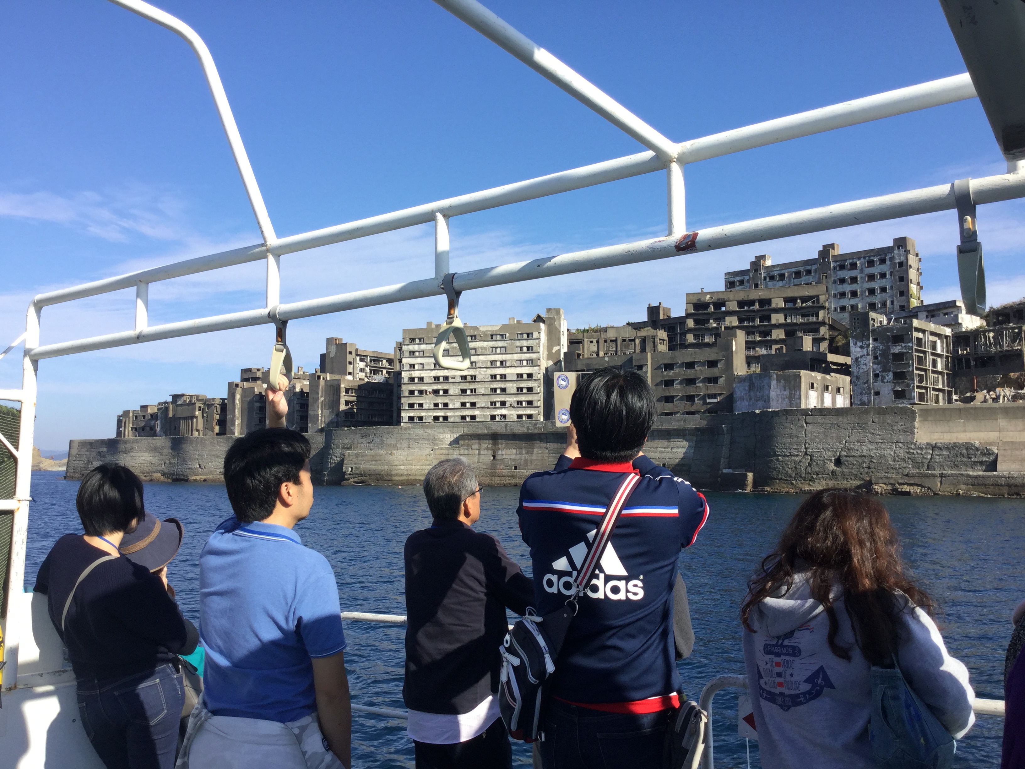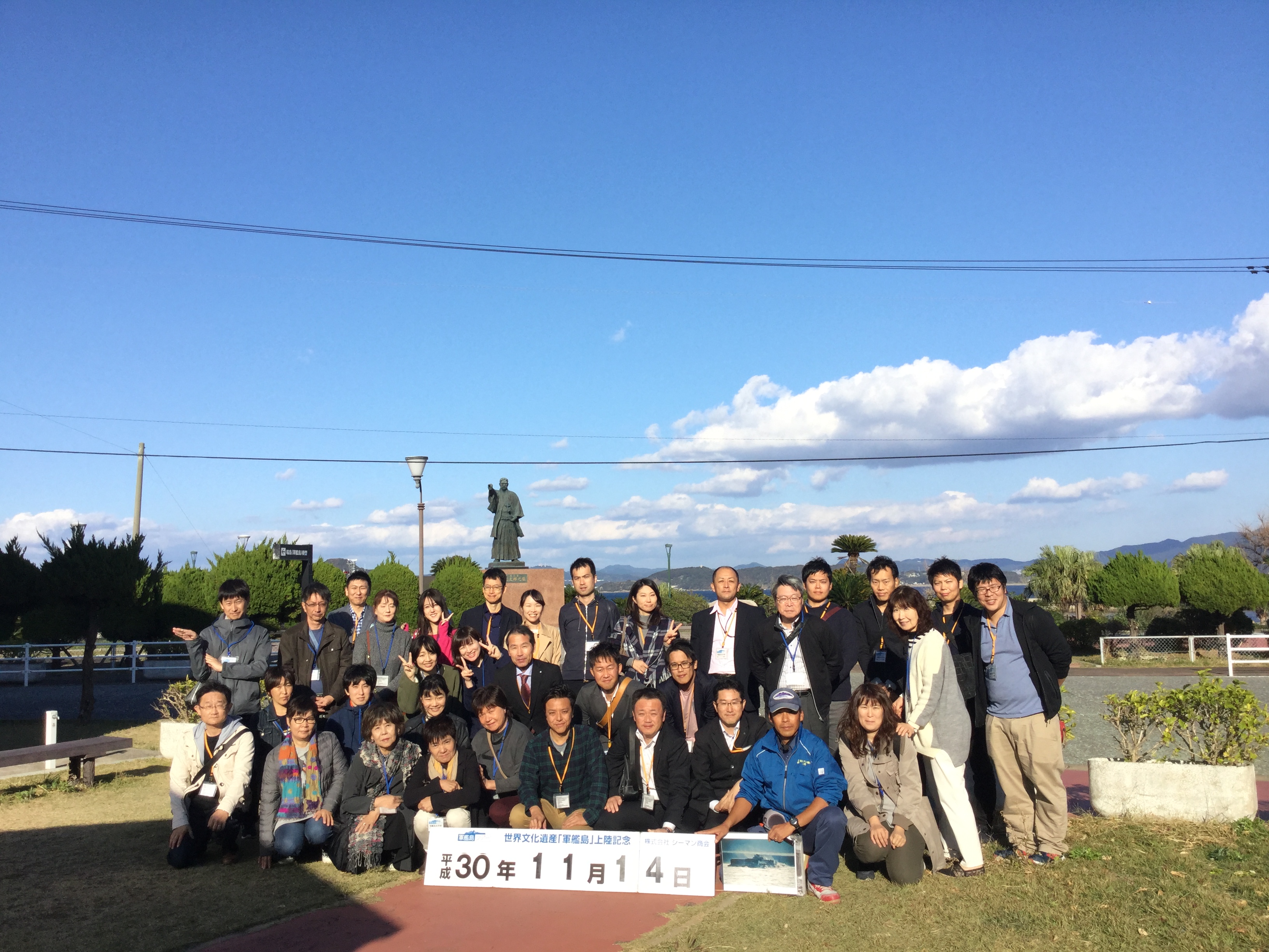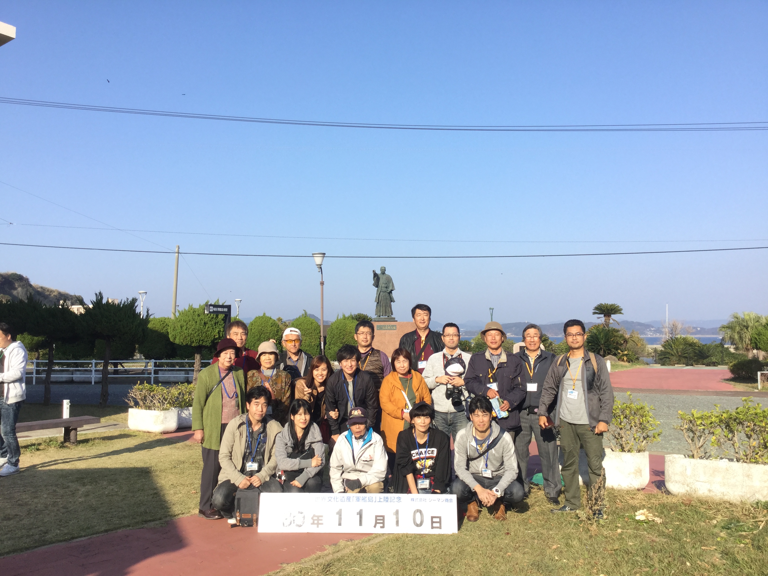 本日は、快晴の気持ちの良い軍艦島をゆっくりと周遊していただき、ガイドの話に耳を傾けておられました(^。^)その後、高島に上陸していただき、石炭資料館や岩崎彌太郎の銅像などを見学していただきました。 今日のガイドは、NPO法人軍艦島を世界遺産にする会の坂本理事長です(╹◡╹)元島民の立場から、軍艦島の歴史や島民の生活の様子などを詳しく案内しました(^。^)