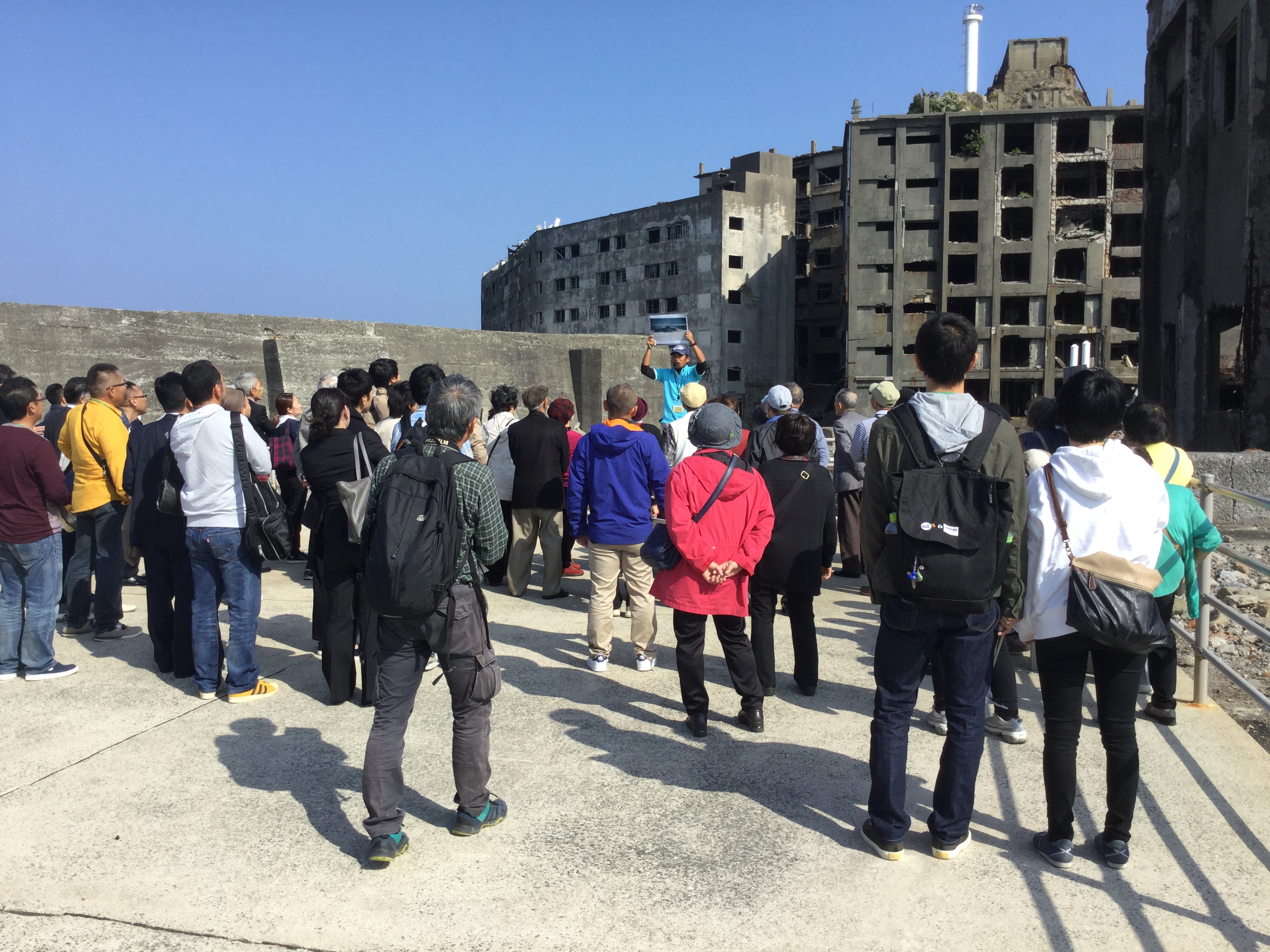今日のガイドは、NPO法人軍艦島を世界遺産にする会の会員が、皆様に軍艦島の歴史や当時の島民の生活の様子などを詳しく案内しました(^。^)