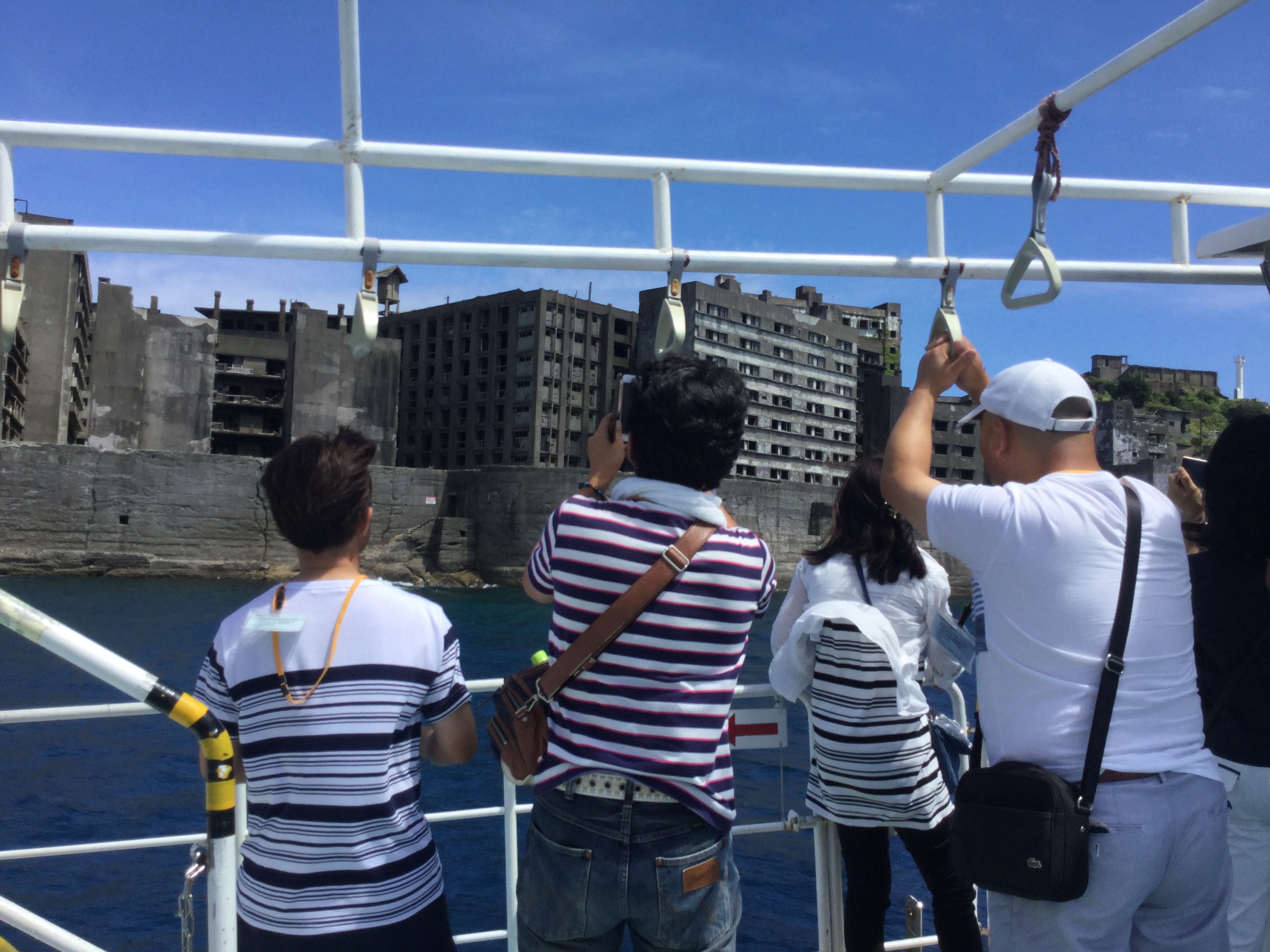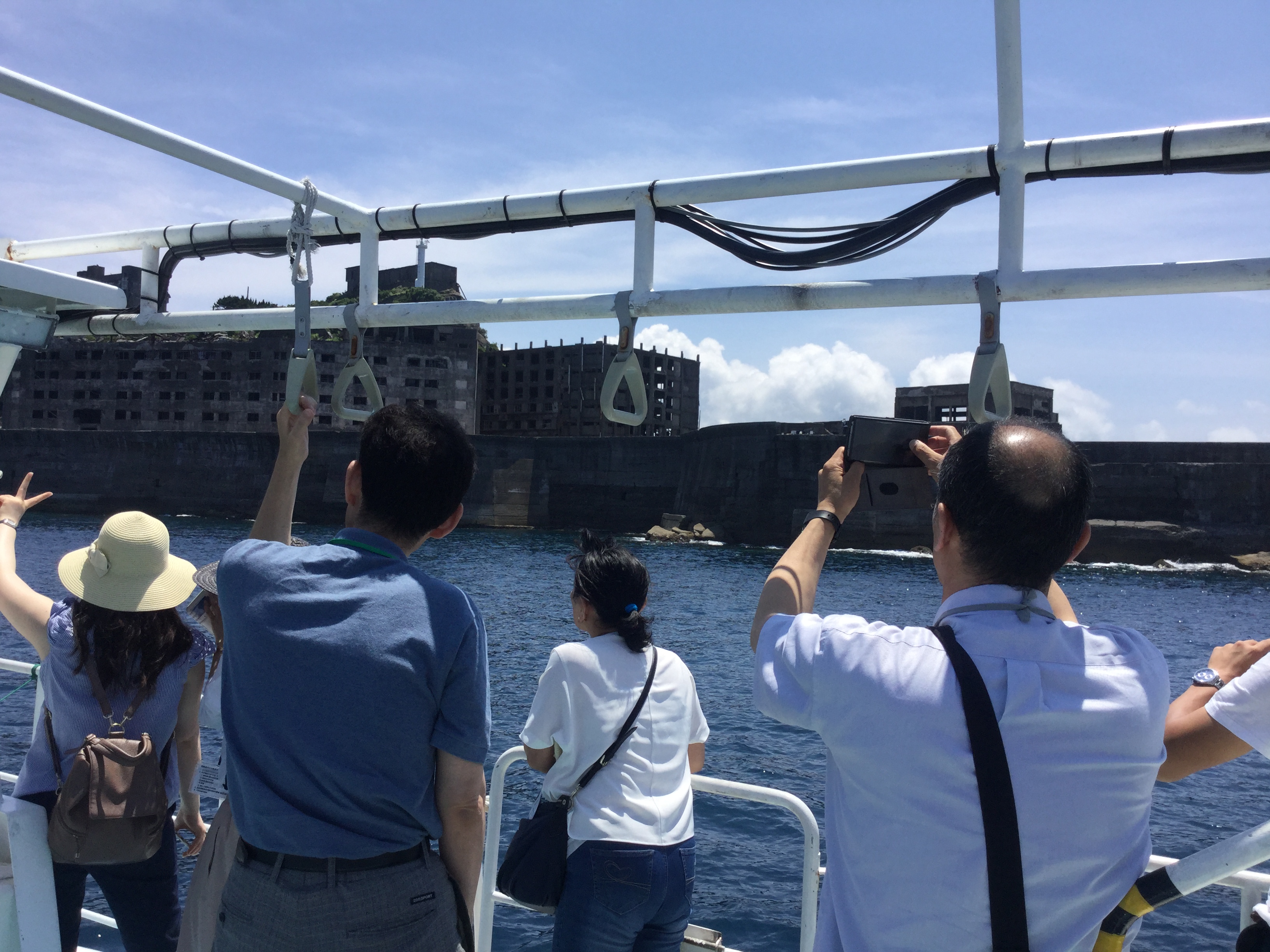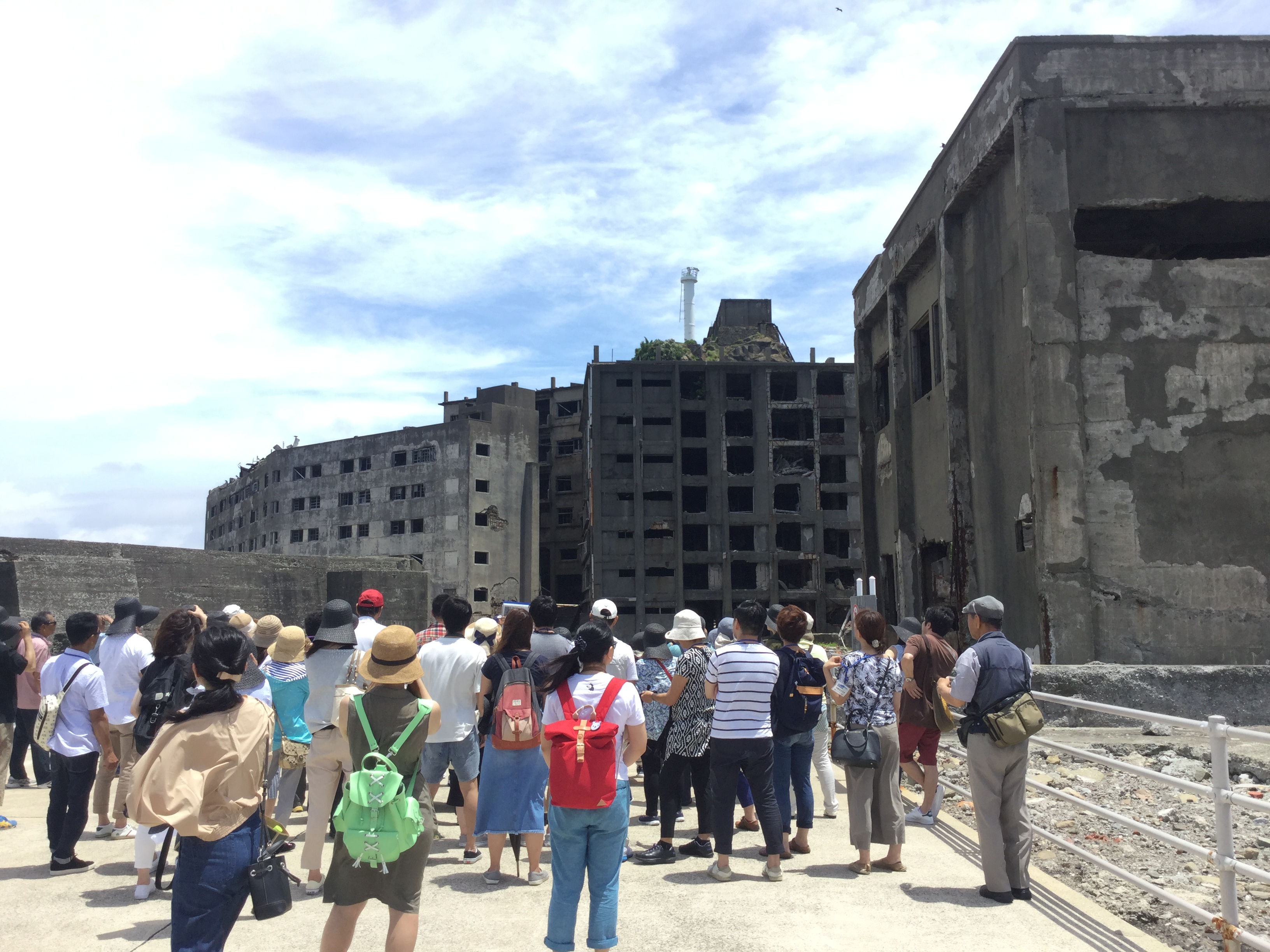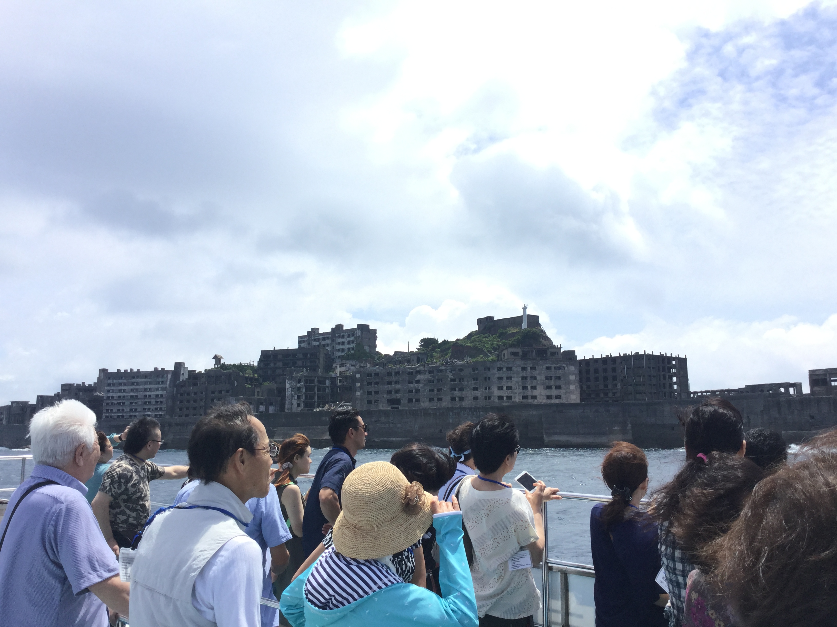 本日は、蒸し暑い軍艦島をゆっくりと上陸&周遊することが出来ました(⌒▽⌒) 今日のガイドは、NPO法人軍艦島を世界遺産にする会の坂本理事長です(^。^) 元島民の立場から、皆様に軍艦島の歴史や当時の活気溢れる生活の様子などを話して頂きました(⌒▽⌒) 今日の写真は、プリントアウトできますので思い出の一枚にして下さい(((o(*゚▽゚*)o)))マー船長より‼️