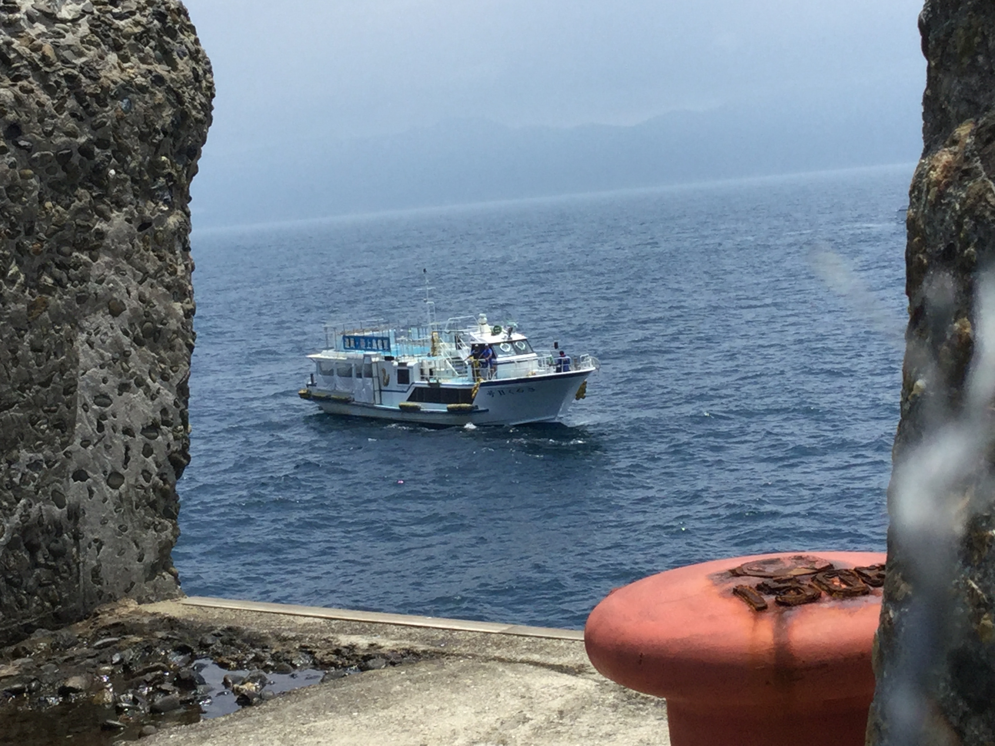 昨日のうねりが今日も残っていて島の周りは波がまだありましたが、無事に上陸できました。お客様は当時の貴重な写真を使ったガイドを聞かれたり、お写真などを撮られ凄く満足されていた様に思えました✌️ 今日の写真はプリントアウトできますので思い出の一枚にして下さい(((o(*゚▽゚*)o)))マー船長より‼️
